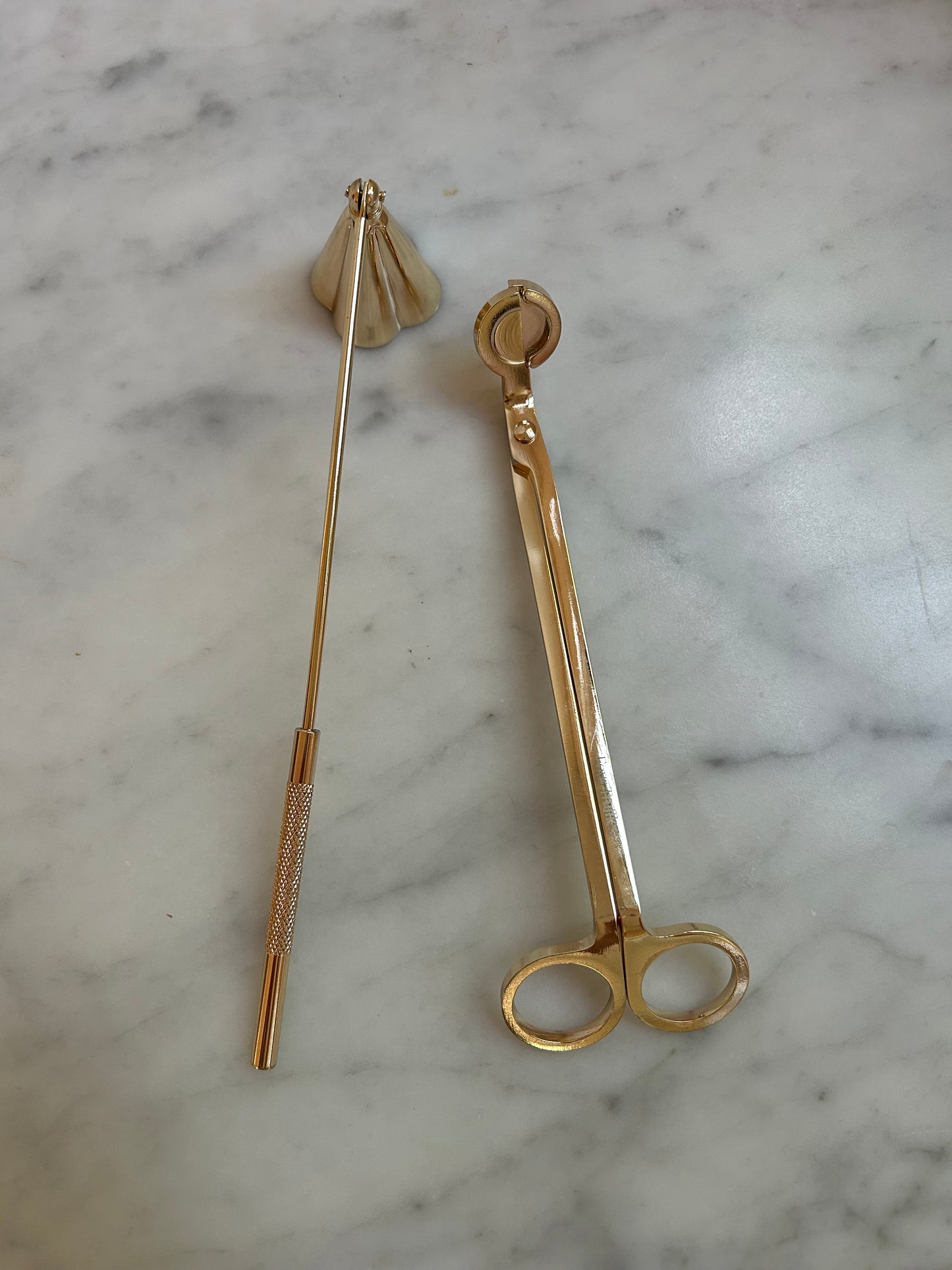 A gold candle trimmer and snuffer set is an elegant and practical addition to any candle lover's collection. The trimmer allows for precise trimming of the wick, ensuring a clean burn and prolonging the life of the candle. The snuffer, designed to gently extinguish the flame without causing smoke, adds a touch of refinement to the candlelit experience. Its vintage charm and sleek design elevate the ambiance of any room.