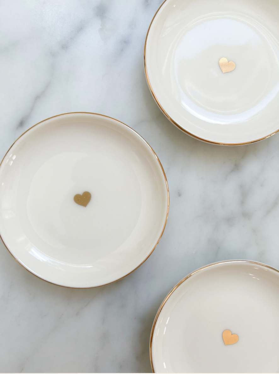 This small trinket tray is the perfect thoughtful gift for Valentine’s Day, Mother’s Day or any special occasion. Featuring a delicate gold heart design, it’s an elegant catch-all tray that serves as a stylish spot for rings, jewelry, or other little treasures. Its refined, minimalist charm adds a touch of sophistication to any room while offering both beauty and practicality.