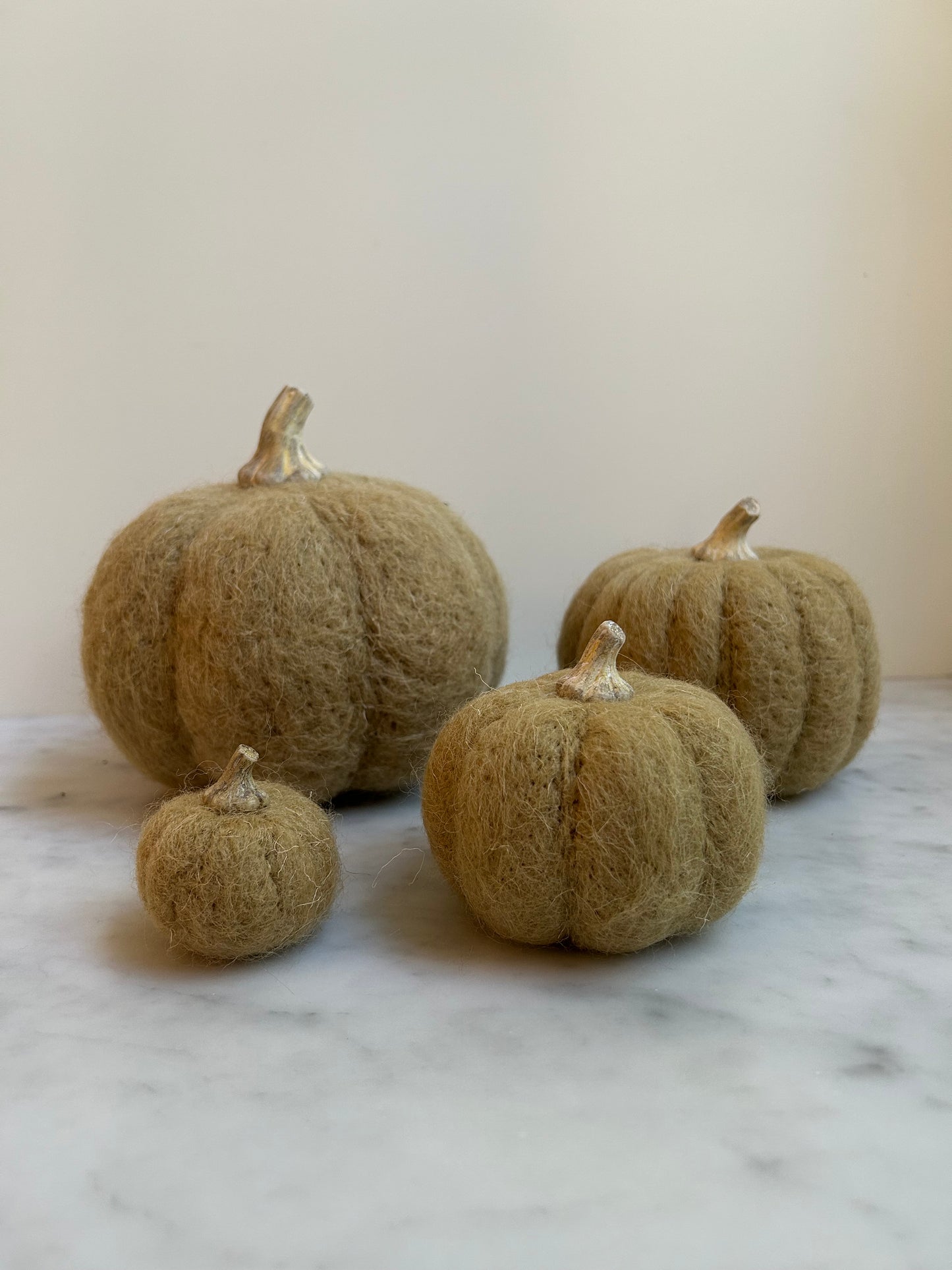 Decorate your harvest table with our adorable, lifelike felt pumpkins. Hand crafted from felted wool and capped with resin stems, they feature neutral earthen colours and look charming when displayed in a bountiful pumpkin patch. Spot Clean.