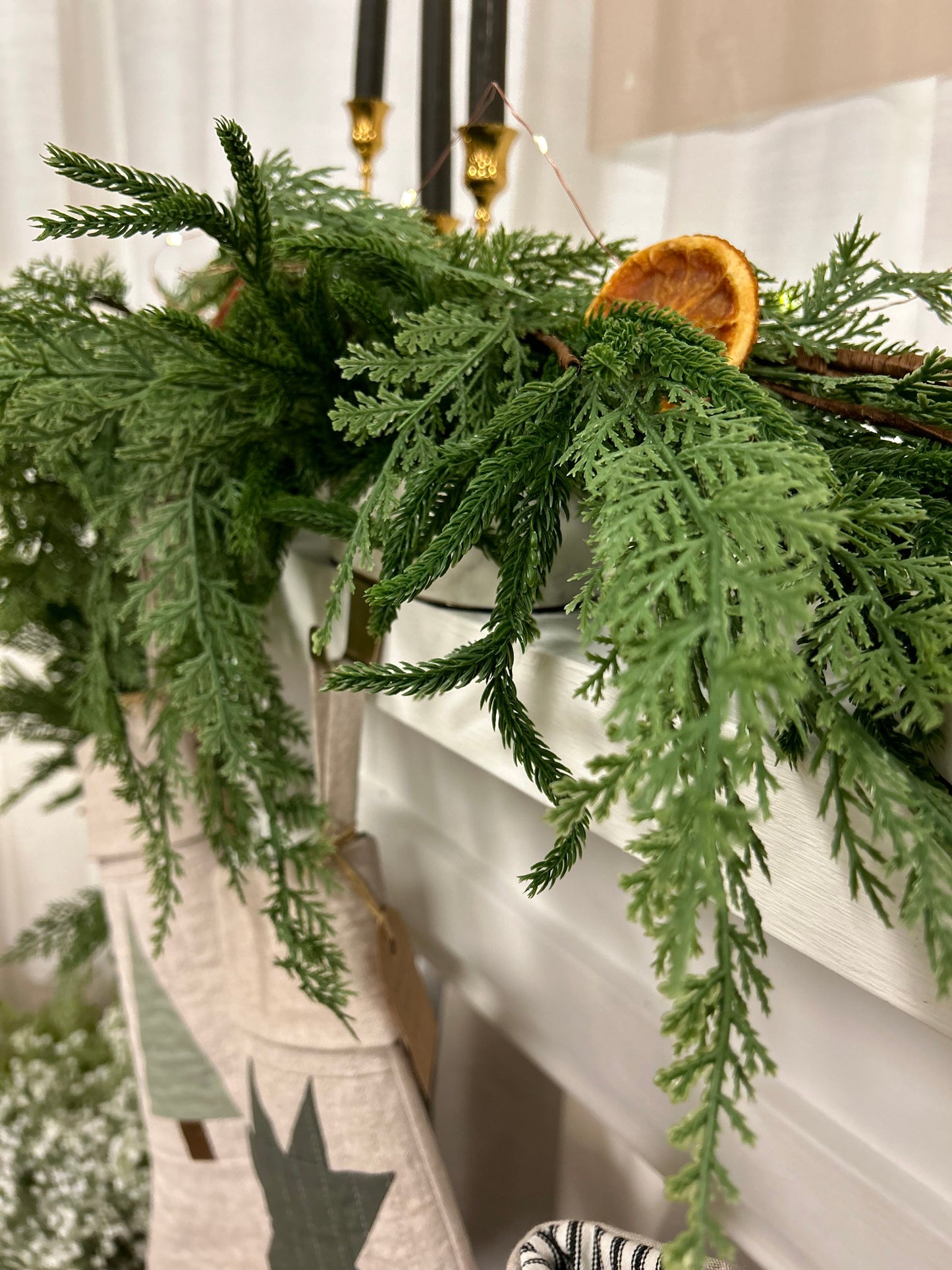 The Norfolk Real Touch Garland, measuring 9 feet in length, is a stunning addition to any home or event decor. Featuring lifelike foliage with a realistic touch, this garland mimics the beauty of fresh greenery while offering lasting durability. Its versatile length makes it perfect for draping over mantels, wrapping around banisters, or adorning doorways, bringing a natural, elegant touch to your space.