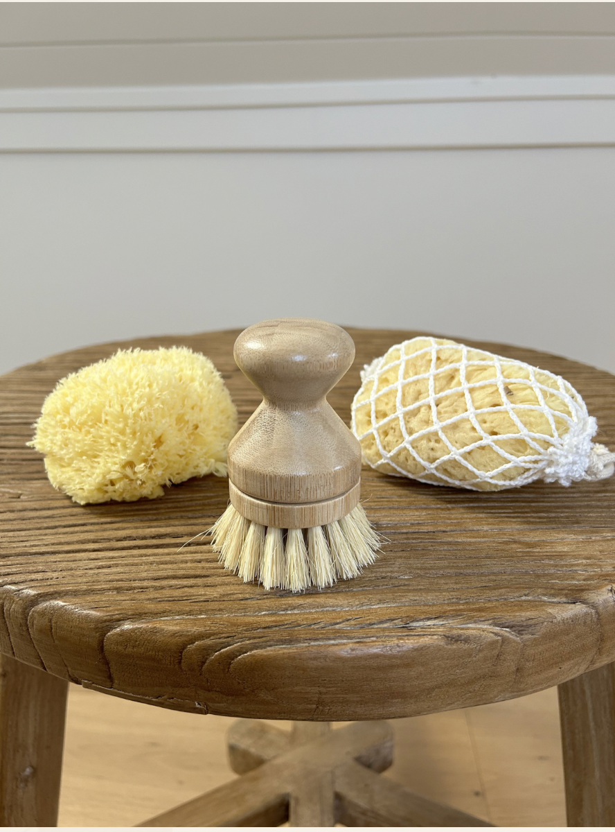 This dish brush is made with a bamboo handle and plant-based sisal.
