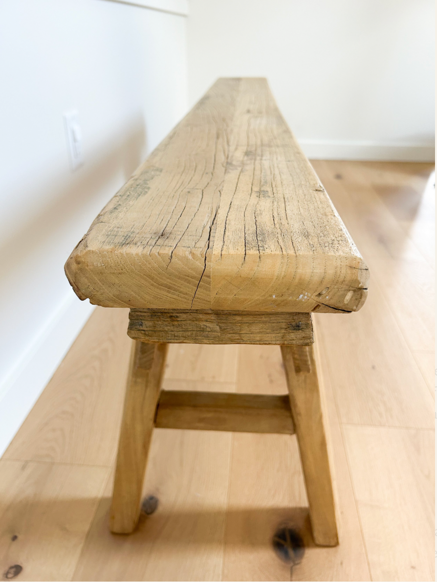 Surfaces that were once smooth and pristine, are now riddled with the marks of age. These timeworn details give Fallon the classic look and feel of a time gone by. Fallon is vintage, so she was crafted 60 - 80 or more years ago & has been used for decades. Each Fallon bench is truly unique, with carvings and one of a kind with different characteristics.