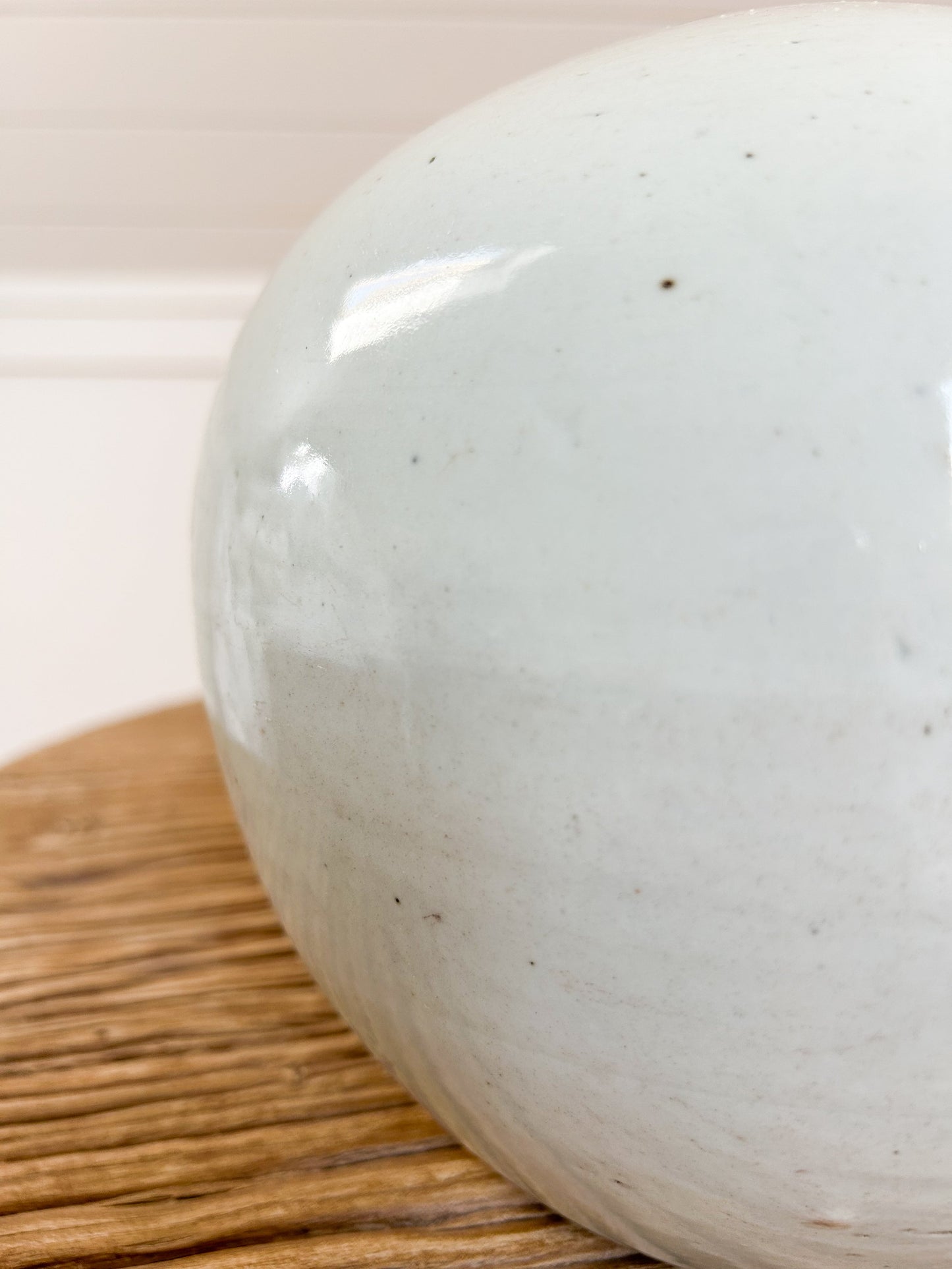 Our Valerie Vintage Pot was handmade and hand-glazed several decades ago. Their soft white hues bring a sophisticated elegance to any space.