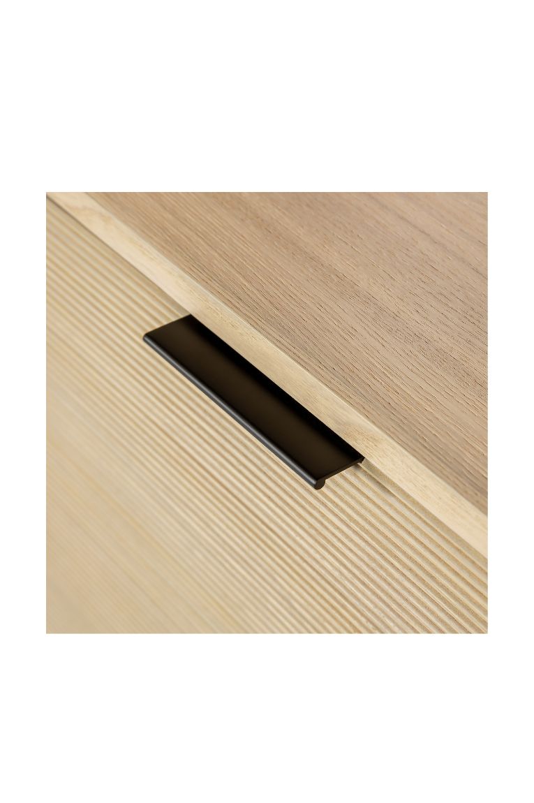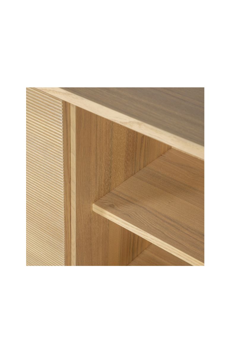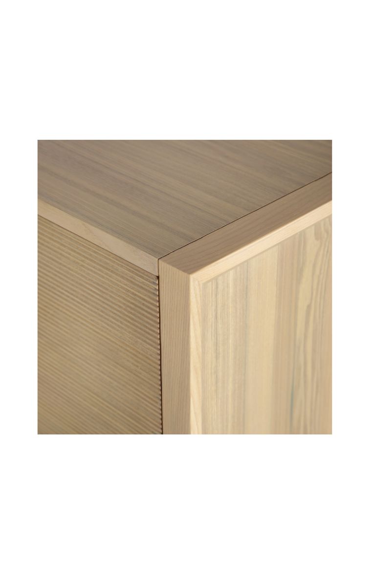 This wood storage cabinet is finished with an ash veneer in a natural wood, and runner legs that add stylish detail. At 14” deep, this sleek minimalist 3-door sideboard was designed for larger spaces and condo living. The shallow depth makes it a perfect fit for dining rooms, living rooms, bedrooms and entryways.